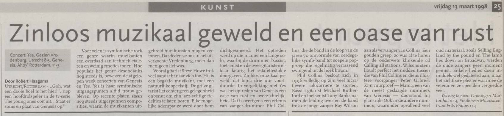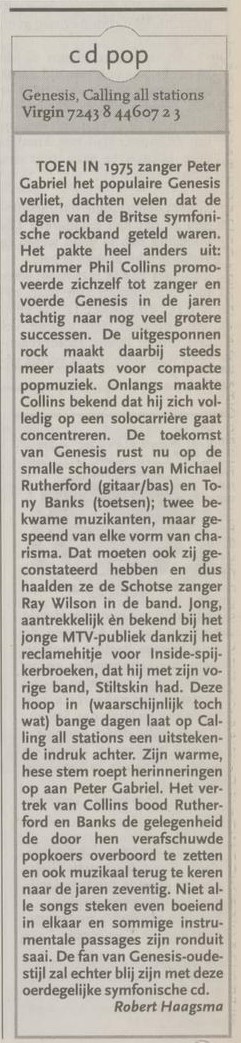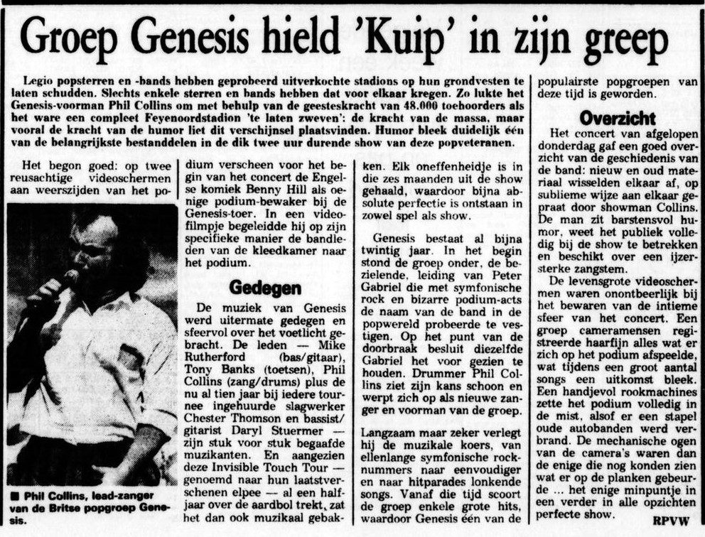 Welcome. This is a website with cuttings from newspapers and magazines. A lot of these articles are written in English and Dutch, but other languages are also included. Most of what you see are scans from original physical items, but some stuff was granted to me digitally. Apart from cuttings there are a lot more Genesis items under the ‘Memorabilia’ button. It’s a comprehensive collection however, a collection never is complete. “You can’t have everything”, to quote a good friend. When you dig a little deeper you may find some interesting stories at Tell Me A Story and Scrap Of The Month. If you want to make a comment or contribute to the website please leave a message in the Guestbook.