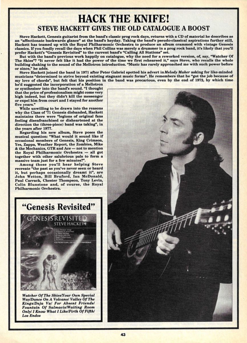 Genesis are a group who have not consciously striven in some pretentious way to raise rock music to an art form, but their combined skills and intelligence have been reflected in their music, resulting in a valuable artistic contribution of lasting, importance. They can count among their fans Japanese, Brazilians, Italians, French, Germans, Dutch, Americans and British, and their music has spread by records, tapes and concerts, throughout the world. This is an extraordinary achievement by a band which began in haphazard fashion as an after-school activity, and became one of the most sought after progressive rock attractions. © Chris Welch, 1978