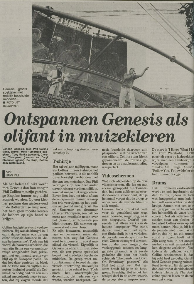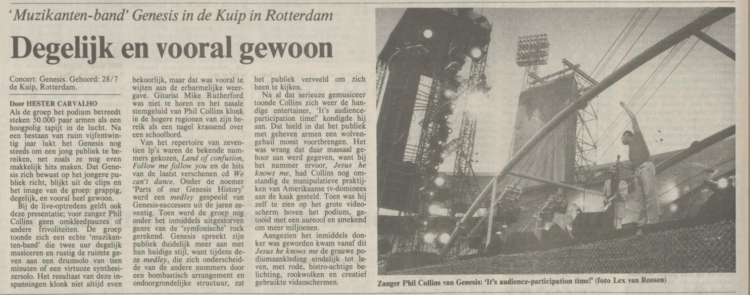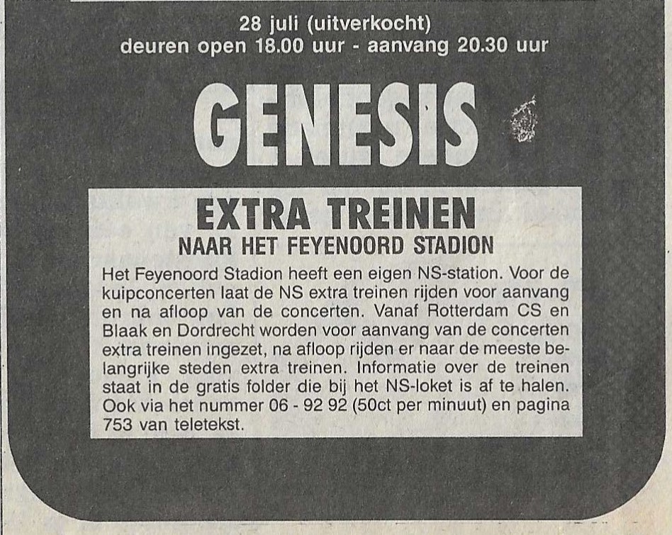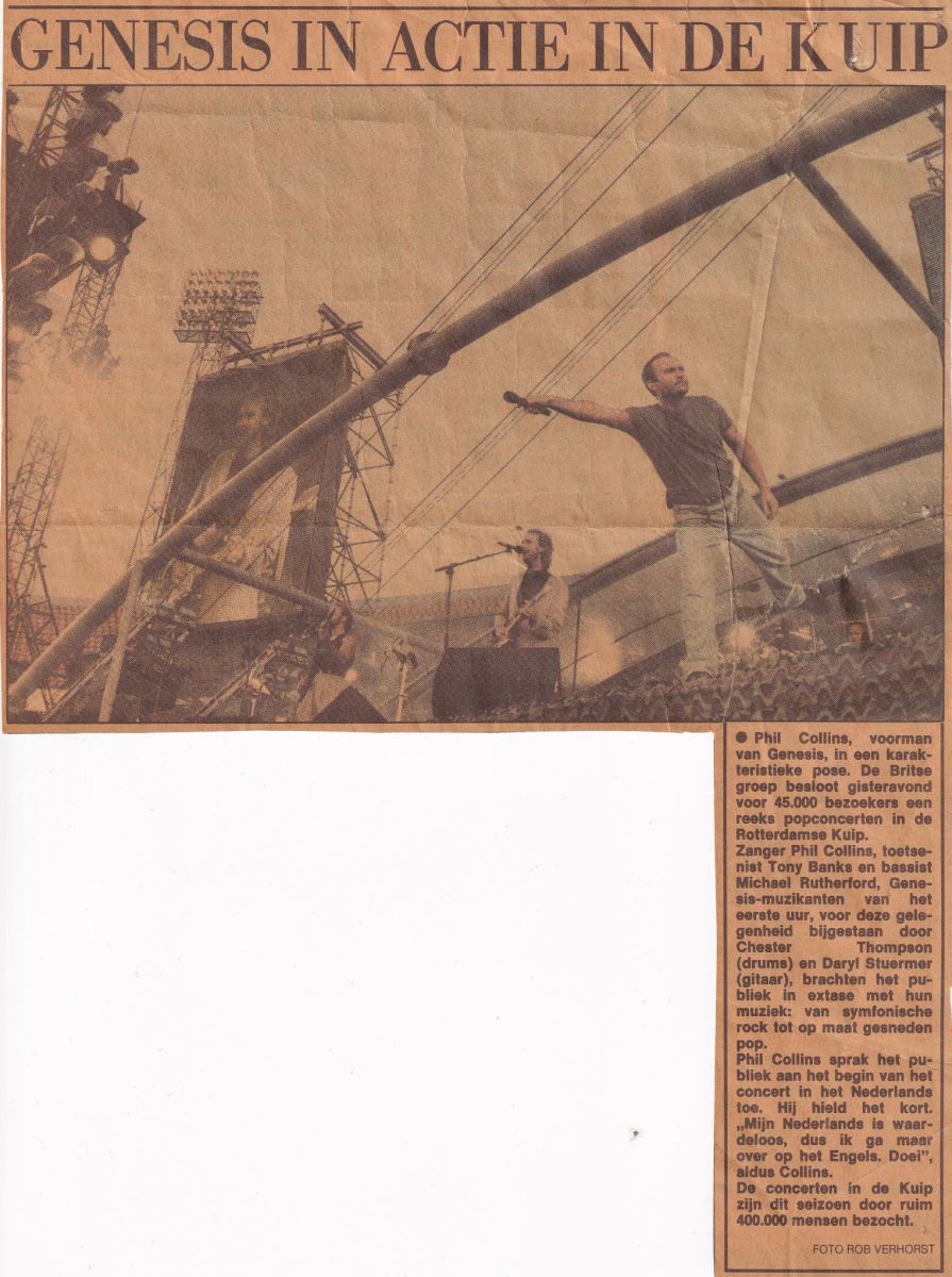 The 1987 gig was a memorable one because of the behaviour of some Dutch fans, pushing their way forward in the audience and fighting. Phil Collins left the stage at that point to return when matters were solved. There’s a more detailed report about the concert on the net. Please click here.