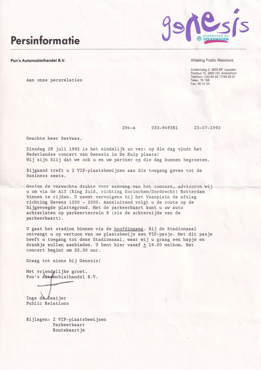 Over the years I collected many cuttings, concert tickets and memorabilia of both concerts at De Kuip. I believe I have all the different ticket stubs that were available from arena/ground to V.I.P. tickets. I even have a letter from Volkswagen to one of their retailers about the ’92 concert, with free tickets and information on how to get there. It’s all in the gallery. Please go check it out.