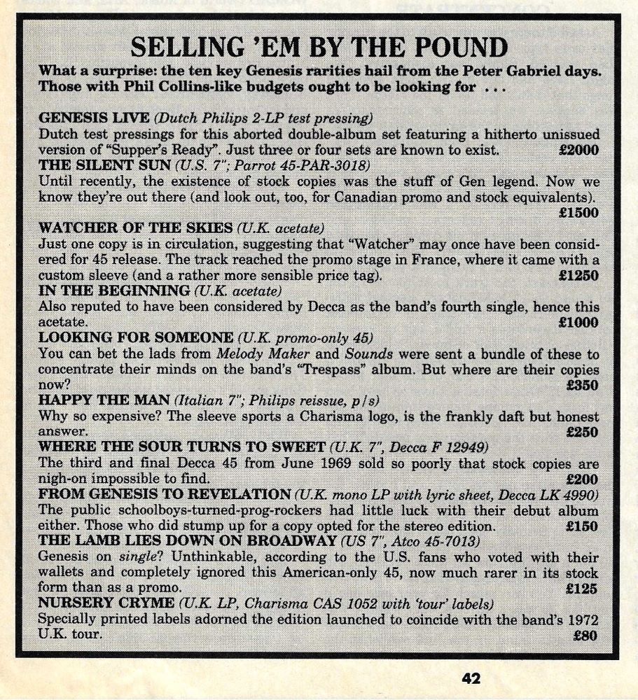 Genesis ‘Live’ possibly may have been planned as a double-album. A test pressing for this double-album was printed in The Netherlands in 1973, by Philips. It is by far the rarest (official) Genesis record known to exist. The test pressing contained all tracks of the original ‘Live’ album, but it also included ‘Supper’s Ready’ on side C. Robin Platts writes in his book ‘Inside & Out’: “Whether this was ever intended for release is open to speculation. However, the idea of a double-album would seemingly have gone against the intention of making ‘Genesis Live’ a budget-priced release.”
