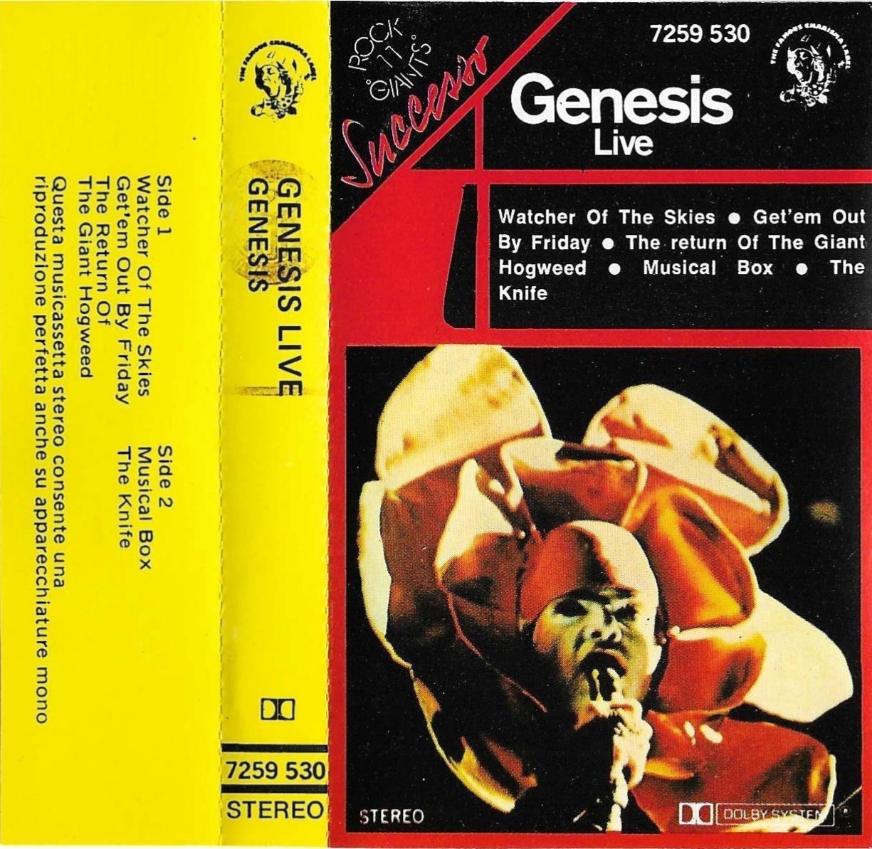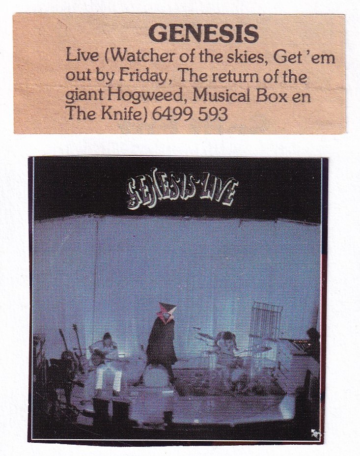 I’m not the kind of fan that wants to have all the different versions of every Genesis album, but I do have some variations from ‘Live’ to choose from. Recently, I added a cassette tape from Saudi Arabia to my collection. It has a slightly different cover than the original release, with little pictures of Gabriel and Hackett put in the original framework. Strangely enough, the original version of ‘Blood On The Rooftops’ opens side B. Look in the gallery below. There’s also the Italian vinyl pressing and two other different cassette tapes.