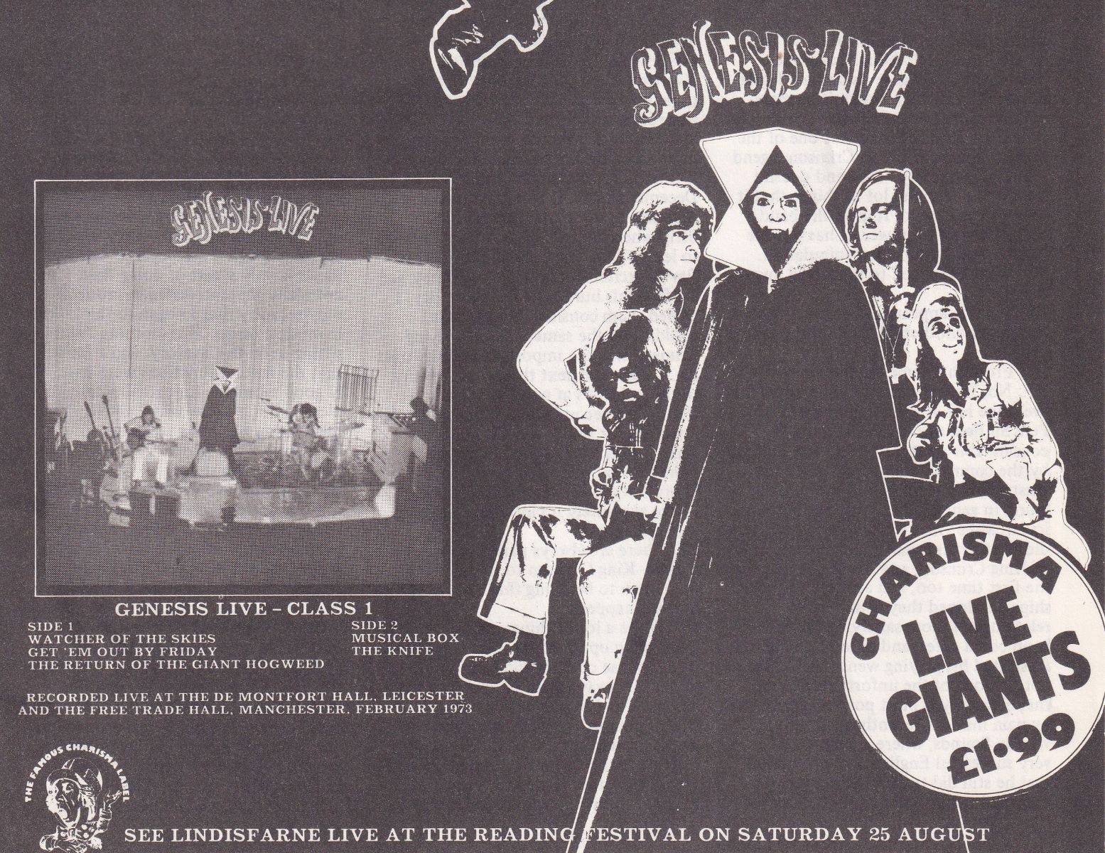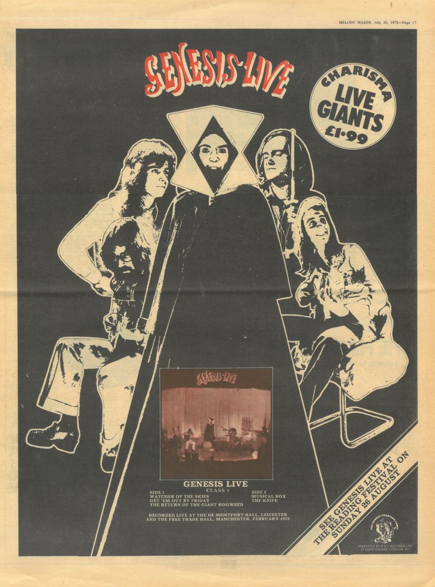 Here’s another another blog post with a Dutch twist. In 1973, in between ‘Foxtrot’ and ‘Selling England By The Pound’, Genesis released their first and only live album from the Gabriel era. Genesis ‘Live’ has a cult status amongst fans and it contains some of their greatest classics. Also, the album has a rather raw edge to it, different from its successors. Even now, more than 50 years later, you’re hearing a band at the top of their game. Genesis ‘Live’ was recorded at the Free Trade Hall in Manchester on February 24th 1973 and the De Montfort Hall in Leicester the next day. Both dates are on the ‘Foxtrot’ tour flyer.