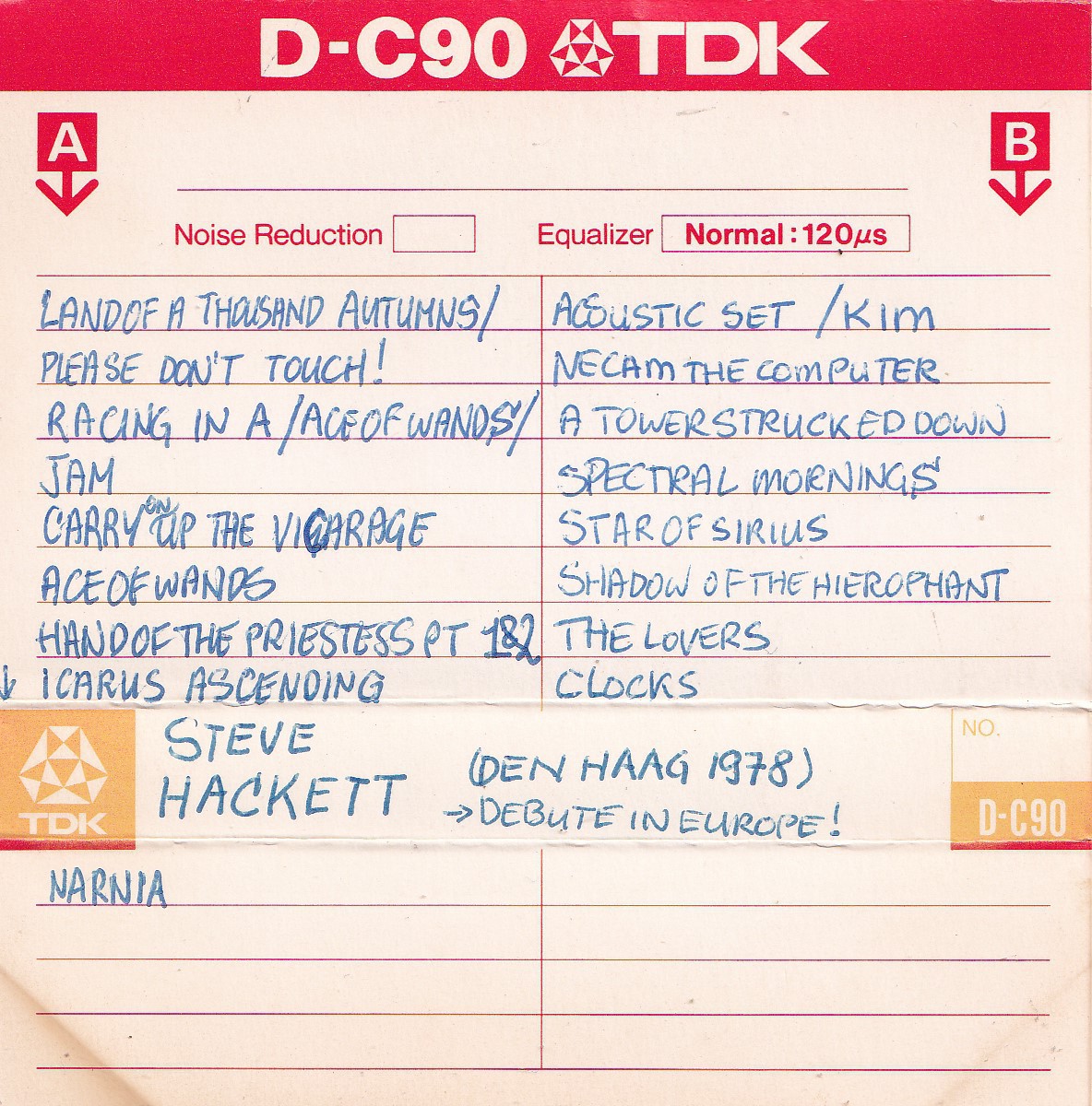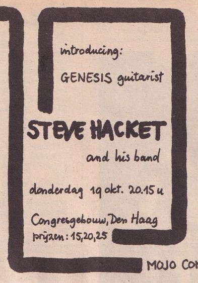 This time, I purchased a rather detailed lot of Genesis cassette tapes containing radio interviews, bootlegs and broadcast recordings. A few Steve Hackett tapes were included, like audience recordings from The Vereeniging in Nijmegen, November 1980, The Royal Theatre Carre in Amsterdam, August 1981 and The Congresgebouw in The Hague, September 1981. Amongst these tapes was also a recording from Hackett’s first ever Dutch concert at The Congresgebouw from October 19th 1978. Listening to it, it all sounds very fresh to my ears. Hackett was 28 by then, full of energy and wicked stories, trying hard to shake off his old feathers and to establish his name as a solo artist.
