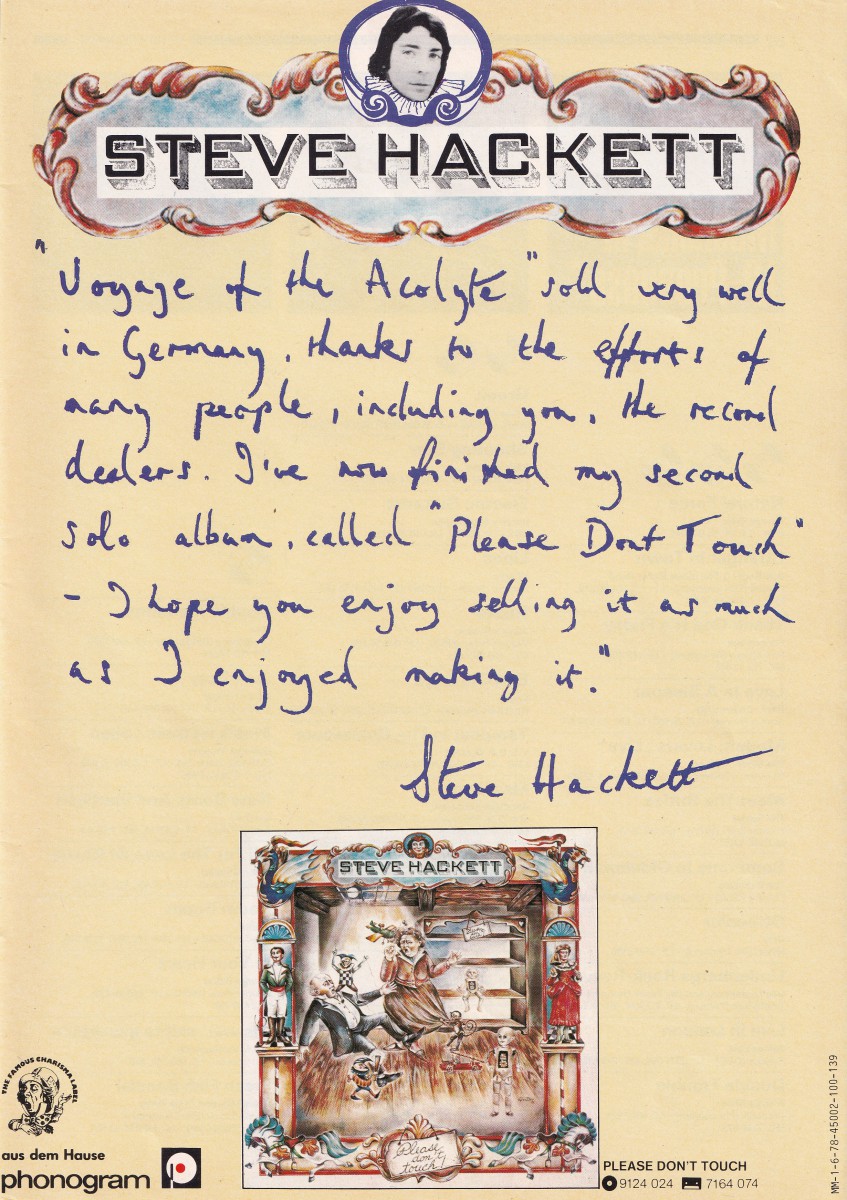 This new blog post is more or less a sequel to the last one about Phil Collins’s first ever solo gig. Steve Hackett started his solo career a few years before his former Genesis collegue, and he did his first tour after the release of his second album ‘Please Don’t Touch’.
