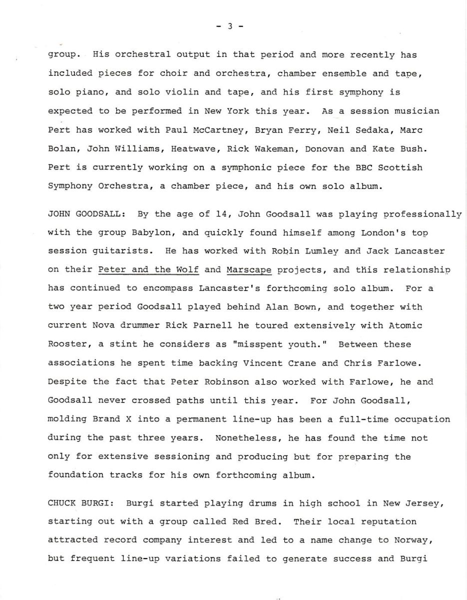 Brand X’s Third Album Revisited