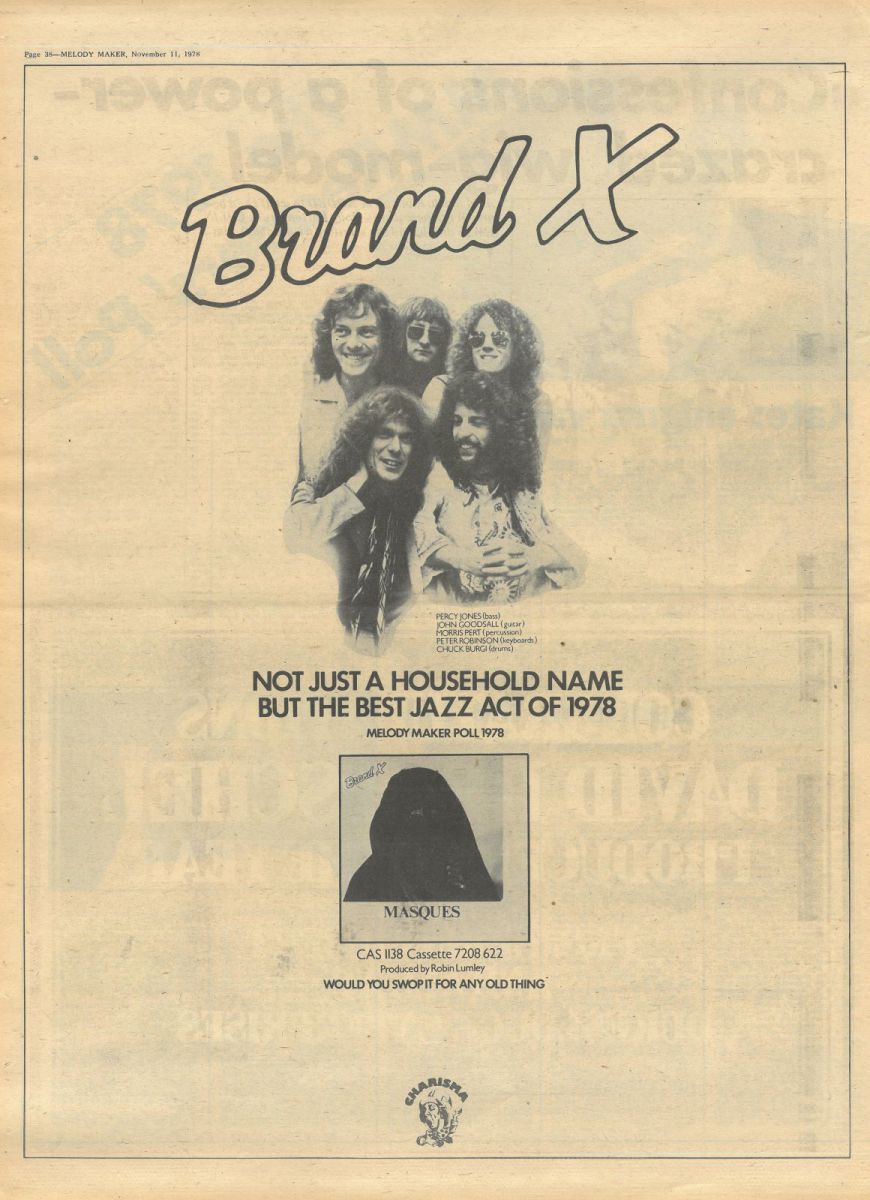 Looking back on my childhood and my musical discoveries I remember being inspired by Brand X’s music from a very young age. The first BX album I heard was ‘Moroccan Roll’. I got it on a cassette from Frank, a Genesis fan and collector I met through an ad on Dutch Ceefax. After that came ‘Unorthodox Behaviour’ and so on and so on. Frank once told me over the phone that he thought ‘Masques’ was BX’s weakest album. Being only 13 or so, I believed everything he said. In the end, I only bought ‘Masques’ to complete my collection, because I owned all other BX albums up to and including ‘Is There Anything About?’ I was mainly interested in what Phil Collins was doing, and therefore, I pretty much ignored ‘Masques’ until recently.